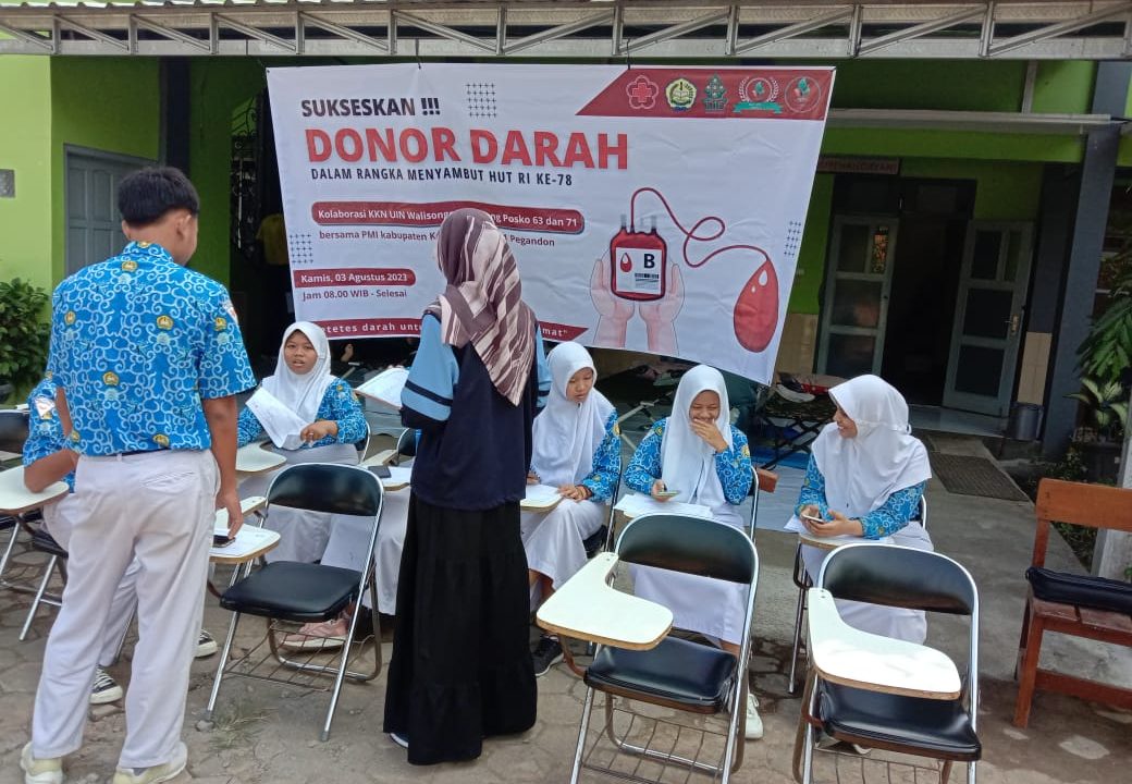 Kendal- Pada Kamis, 03/08 KKN UIN Walisongo Posko 63 mengadakan kerja sama dengan Posko 71 untuk mengadakan aksi kemanusiaan berupa donor darah di Kendal. Program kerja dua posko tersebut dilaksanakan bersamaan karena memiliki kendala yang sama yaitu jumlah peminat donor.