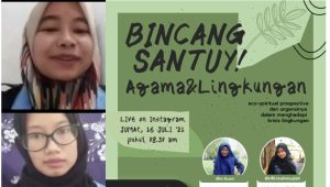 Semarang – Dua dari mahasiswa anggota KKN MIT DR XII kelompok 35 UIN Walisongo, Rasyida Rifa’ati dan Rifki M melalui platfrom Live Instagram, mengadakan diskusi Eco-Spiritual Literacy untuk mengatasi krisi lingkungan (16/07/2021).