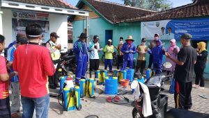 Sebelum melakukan penyempretan disinfektan, acara diawali dengan brefing dan do’a bersama. Do’a yang dipimpin langsung oleh Kaur Kesra Desa, Suroso, berlangsung dengan khidmat.