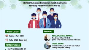 Bandar Lampung – Lembaga Pers Mahasiswa Islam (LAPMI) HMI Cabang Bandar Lampung mengadakan diskusi Online dengan tema “Menakar kebijakan pemerintah pusat dan daerah terhadap pandemi global covid-19, Sabtu (04/04).