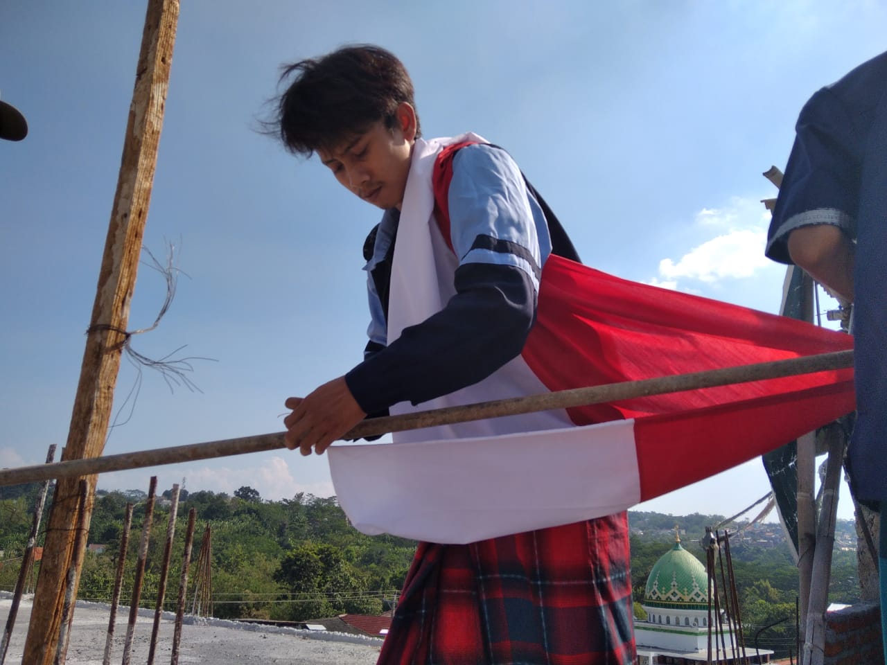 Indonesia hari ini merayakan ulang tahun ke-76. Setiap masyarakat memiliki cara tersendiri untuk menunjukan rasa Nasionalismenya. Termasuk Amrullah, anggota KKN MIT DR ke-12 UIN Walisongo Semarang kelompok 26. Ia memasang bendera di halaman Pondok Pesantren Alma’rufiyyah pada Kamis (5/8/21).