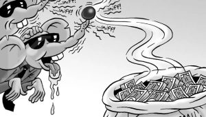 Dengan perawakan ceria, para koruptor dengan percaya diri berfose depan kamera karena yakin bahwa putusan sang juru keadilan dapat dibatalkan oleh kekuasaan. Karena kepentingan bersua kepentingan, keinginan bergandengan dengan kebutuhan. Dalam tontonan televisi, politik bahkan disahkan sebagai “uang tunai”. Sang kepala daerah sudah meneken proyek-proyek pemerintah kepada para pemilik modal. Bahkan sebelum terpilih, sang calon kepala daerah sudah menyusun struktur kepemimpinannya. Dengan demikian, keuangan pemerintah daerah condong pada pembesaran pengeluaran rutin pejabat dan birokrasi ketimbang pada pengeluaran dalam membangun kesejahteraan rakyat.