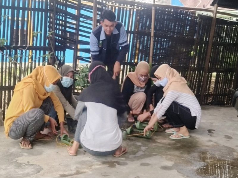 - Penugasan Praktik Setelah mendapatkan teori, peserta akan diberi tugas praktik. Dalam tahap ini para peserta secara bersama-sama membuat kerjianan berupa pot dari bahan botol plastik bekas.