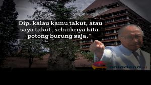 Karena mengagumi keberanian rektornya, tak urung Dipo Alam tetap bertanya.