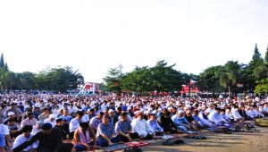 - Berniat shalat Idul Fitri secara sendiri yang jika dilafalkan berbunyi;