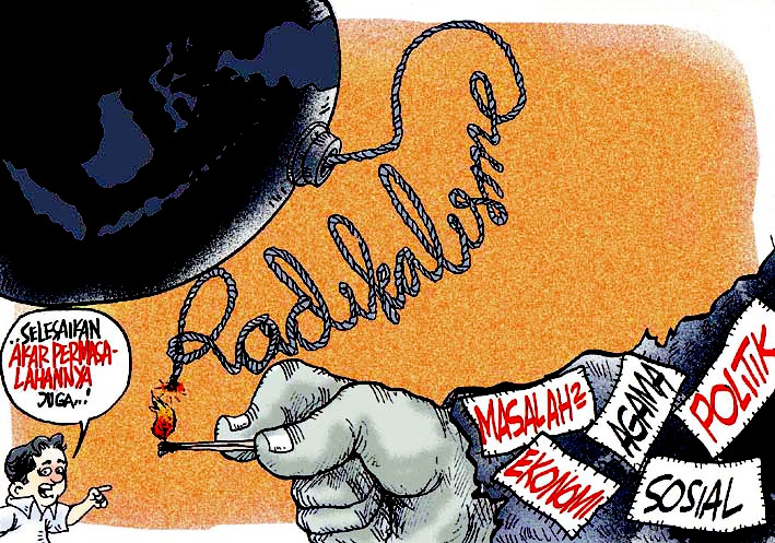 Sedangkan dalam konteks agama, kata radikalisme digunakan pemerintah untuk menggambarkan prilaku kelompok atau organisasi yang ekstrem. Anehnya, narasi yang selalu digaungkan pemerintah terkait radikalisme selalu menyasar kepada umat islam. Jelas hal tersebut tidaklah proposional. Tuduhan Islam radikal adalah tuduhan yang tidak berdasar pada konsep keadilan. Sebab radikalisme ekstremisme terdapat bukan hanya pada Islam saja tapi juga umat beragama lainnya di dunia.